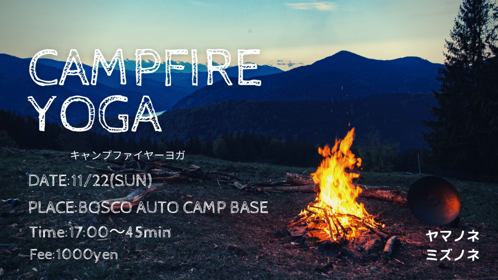 ◉17:30〜45分*キャンプファイヤーヨガ* ◉費用: 1000円(税込み)
