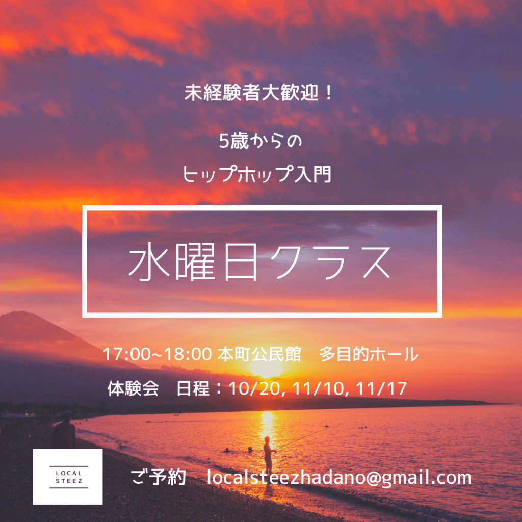 水曜日クラス 新規メンバー募集中! localsteezhadano2021年10月19日未分類 投稿ナビゲーション 前次へ ダンス未経験の方からご参加頂けます! 5歳から2年生くらいの子供達対象です。 ご相談、ご予約はこちらから 共有: X で共有 (新しいウィンドウで開きます) X Facebook で共有 (新しいウィンドウで開きます) Facebook いいね 読み込み中…