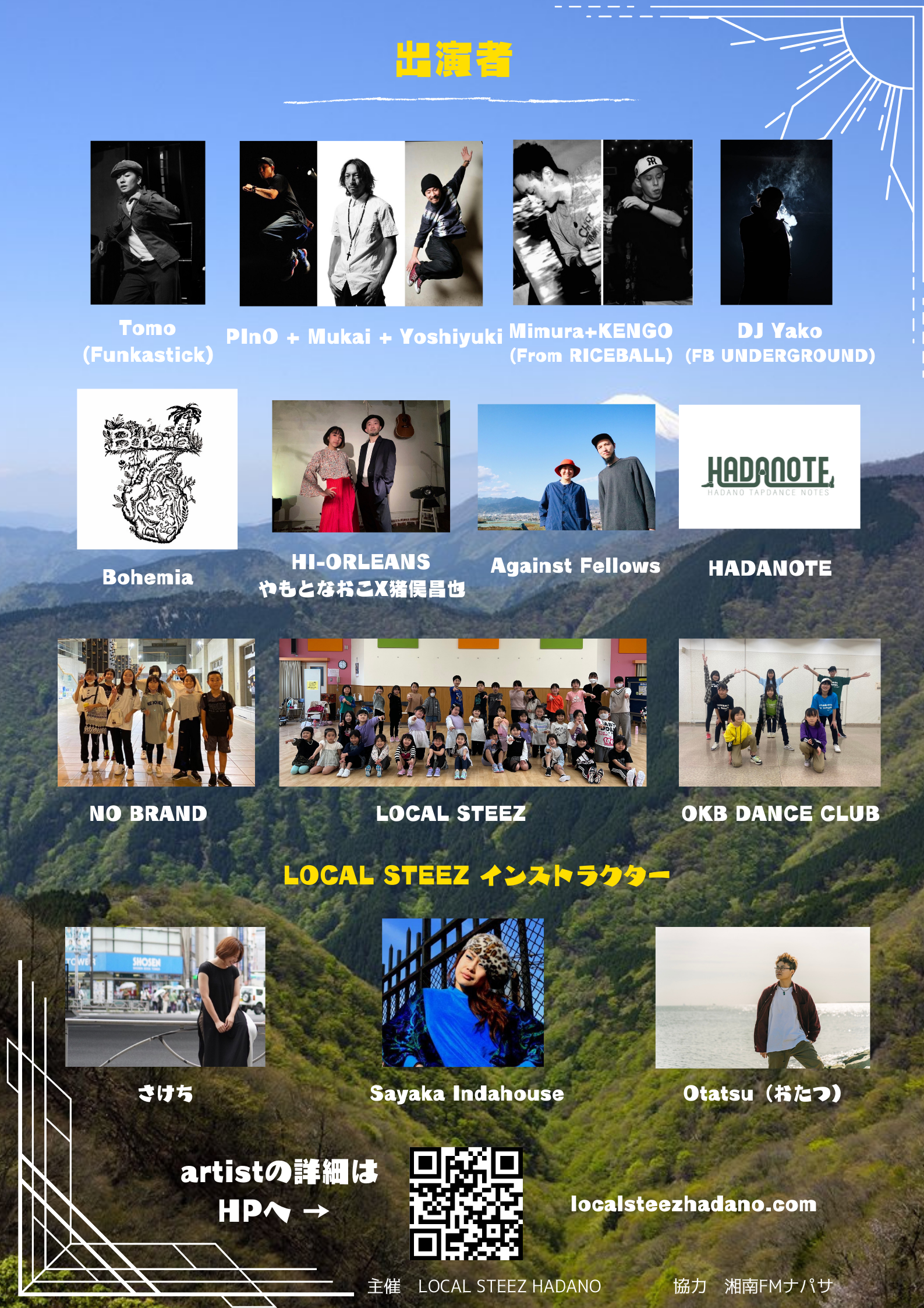 47都道府県ツアー、渋谷TSUTAYA O-WEST(600人キャパ)にて1人弾き語りワンマンライブ、海外公演など幅広く活躍する伊勢原出身シンガーソングライターやもとなおこ、脱サラ後単身で台湾タップフェスやニューオリンズを訪れセッションやライブに参加してきた秦野出身タップダンサー猪俣昌也による歌とタップダンスの異色ユニット。”地元をニューオリンズみたいに音楽溢れる街にしたい”という共通の想いがあり結成。屋外やライブハウスなど様々なイベントにてライブ活動を行なっている。
